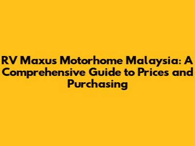 RV Maxus Motorhome Malaysia: Pricing & Buying Guide