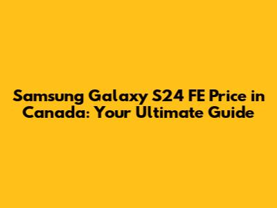 Samsung Galaxy S24 FE Price In Canada: Your Ultimate Guide