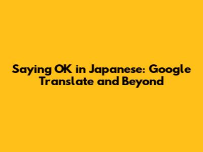 Saying 'OK' In Japanese: Google Translate And Beyond