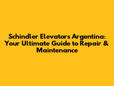 Schindler Elevators Argentina: Your Guide To Repair & Maintenance