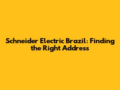 Schneider Electric Brazil: Find The Right Address