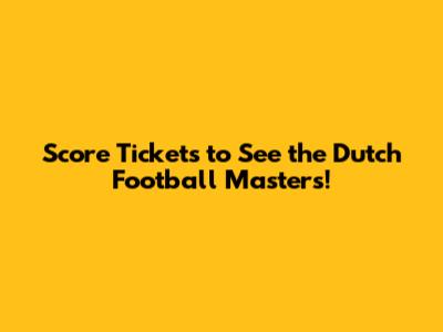 Score Tickets To See The Dutch Football Masters!