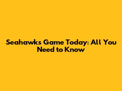 Seahawks Game Today: All You Need To Know