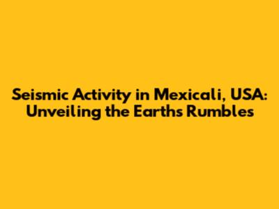 Seismic Activity: Mexicali, USA - What You Need To Know