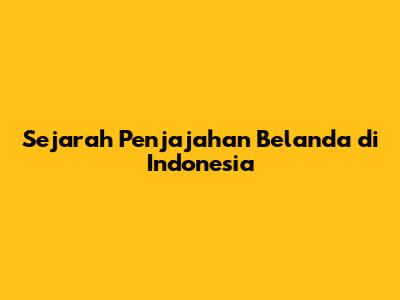 Sejarah Penjajahan Belanda Di Indonesia