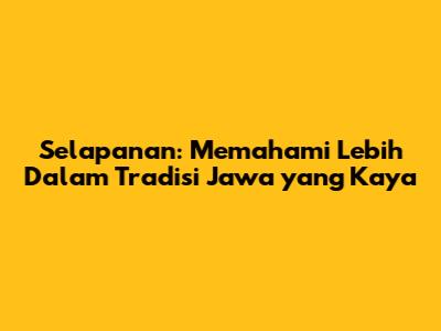 Selapanan: Pengertian, Makna, Dan Tradisi Dalam Budaya Jawa