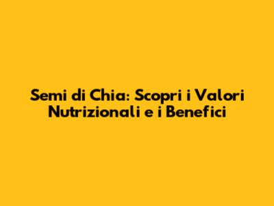 Parliamo dei valori nutrizionali dei semi di chia. Questi piccoli semi sono un concentrato di nutrienti essenziali che possono apportare numerosi benefici alla tua salute. Ecco una panoramica dettagliata di cosa contengono:
