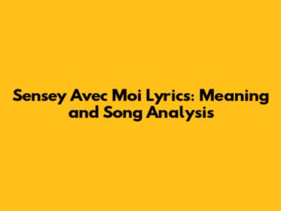 Sensey Avec Moi Lyrics: Meaning And Song Analysis