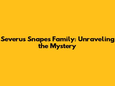 Severus Snape's Family: Unraveling The Mystery
