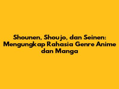 Hai, teman-teman pecinta anime dan manga! Pasti kalian sering banget denger istilah shounen, shoujo, dan seinen, kan? Nah, kali ini kita bakal kupas tuntas apa sih sebenarnya perbedaan dari ketiga genre ini. Jangan khawatir, kita bakal bahas dengan santai dan mudah dipahami, jadi siapapun kalian, baik yang baru mulai atau sudah jadi otaku senior, pasti bisa ikut! Yuk, langsung aja kita mulai petualangan seru memahami dunia genre anime dan manga!