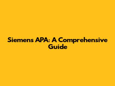 Siemens APA: A Comprehensive Guide