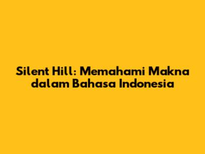 Silent Hill: Apa Artinya Dalam Bahasa Indonesia?