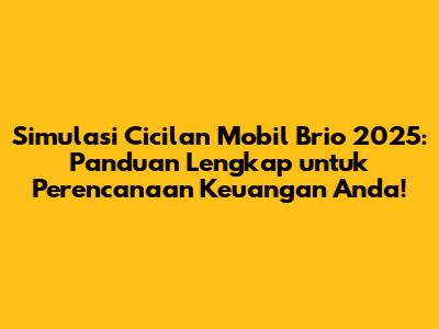 Simulasi cicilan mobil Brio 2025 adalah alat yang sangat penting untuk membantu kamu merencanakan keuangan dan mewujudkan impian memiliki mobil impianmu. Dengan memahami faktor-faktor yang mempengaruhi cicilan, memilih skema yang tepat, dan mengikuti panduan lengkap, kamu bisa memiliki Brio tanpa harus khawatir soal keuangan.