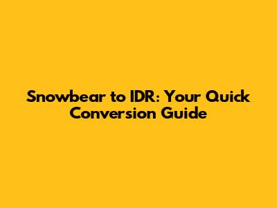 Snowbear To IDR: Your Quick Conversion Guide