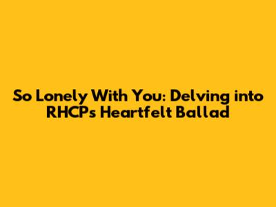 So Lonely With You: Delving Into RHCP's Heartfelt Ballad