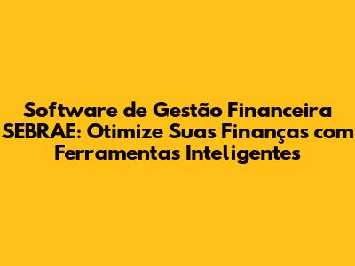 Software De Gestão Financeira SEBRAE: Otimize Suas Finanças