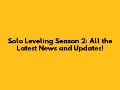 Solo Leveling Season 2: Trailer & Release Date Updates