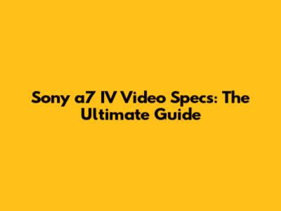 Sony A7 IV Video Specs: The Ultimate Guide