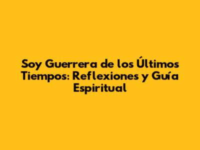 Soy Guerrera De Los Últimos Tiempos: Reflexiones Y Guía Espiritual