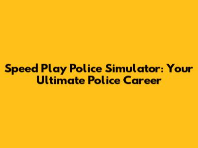 Speed Play Police Simulator: Your Ultimate Police Career