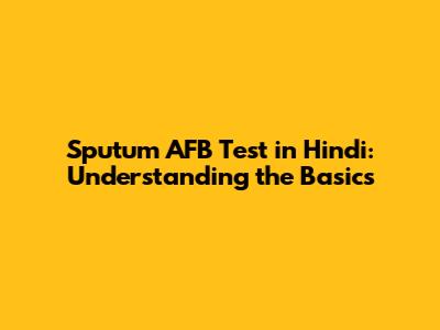 Sputum AFB Test In Hindi: Understanding The Basics