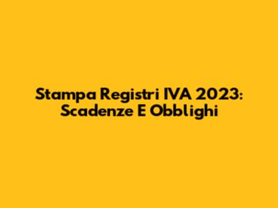 Stampa Registri IVA 2023: Scadenze E Obblighi