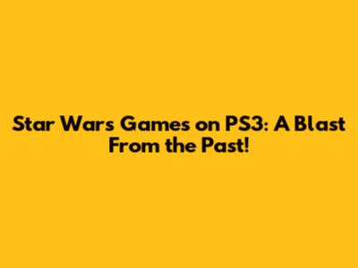 Star Wars Games On PS3: A Blast From The Past!