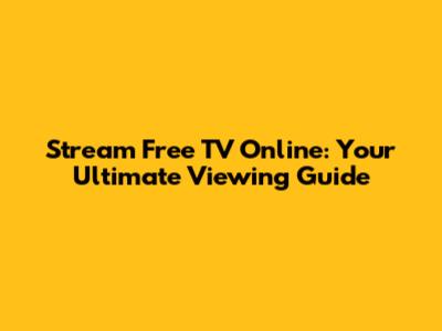 Stream Free TV Online: Your Ultimate Viewing Guide
