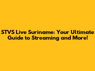 STVS Live Suriname: Your Ultimate Guide To Streaming And More!