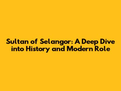 Sultan Of Selangor: History & Role