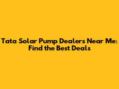 Tata Solar Pump Dealers Near Me: Find The Best Deals