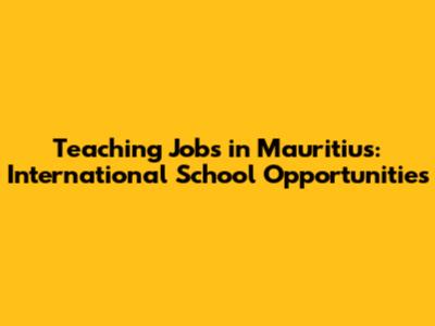 Teaching Jobs In Mauritius: International School Opportunities