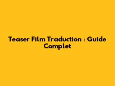 Teaser Film Traduction : Guide Complet