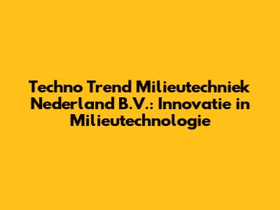 Techno Trend Milieutechniek Nederland B.V.: Innovatie In Milieutechnologie