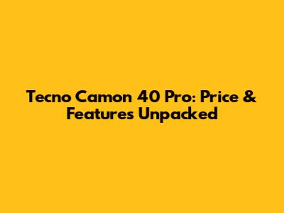 Tecno Camon 40 Pro: Price & Features Unpacked