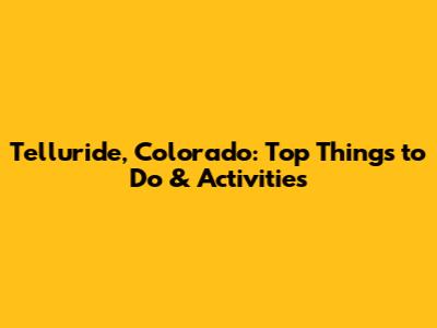 Telluride Colorado: Top Things To Do & Activities