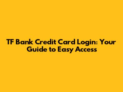 TF Bank Credit Card Login: Your Guide To Easy Access