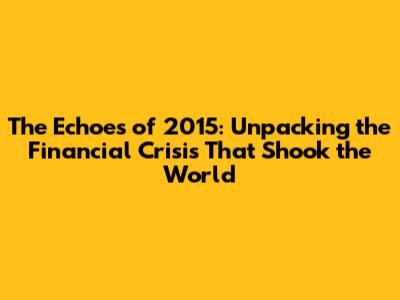 Hey guys, let's dive deep into something that might sound a bit historical, but trust me, its ripples are still felt today: the 2015 financial crisis. While not as dramatic as the 2008 meltdown, 2015 saw a significant global economic downturn that deserves a closer look. We're talking about a period where stock markets tumbled, emerging economies faced major headwinds, and the interconnectedness of our global financial system was laid bare once again. Understanding this event isn't just about dusting off old news; it's about grasping the vulnerabilities that still exist and how they can impact your own finances. So, buckle up as we unravel the threads of what happened, why it happened, and what lessons we can draw from it.