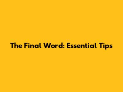 The Final Word: Essential Tips