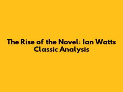 The Rise Of The Novel: Ian Watt's Classic Analysis
