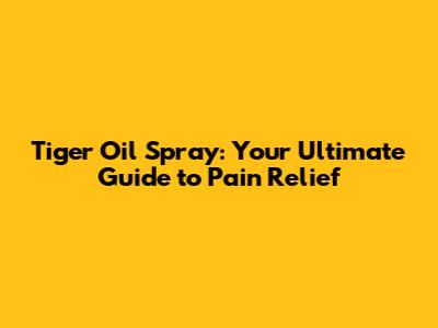 Tiger Oil Spray: Your Guide To Pain Relief