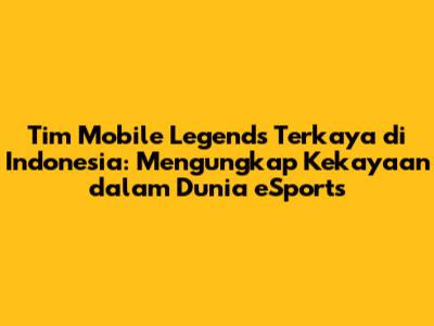 Semoga artikel ini memberikan wawasan yang bermanfaat tentang tim Mobile Legends terkaya di Indonesia. Jangan lupa untuk terus mendukung perkembangan eSports di tanah air!