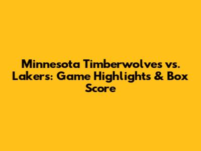 Timberwolves Vs Lakers: Game Highlights & Box Score