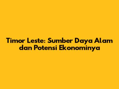 Timor Leste: Sumber Daya Alam Dan Potensi Ekonominya