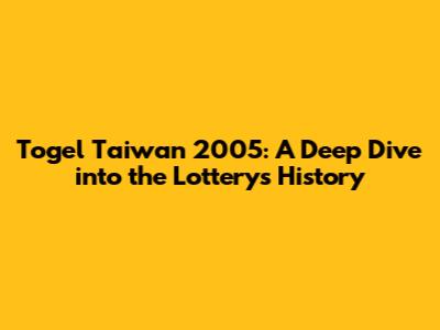 Togel Taiwan 2005: A Deep Dive Into The Lottery's History