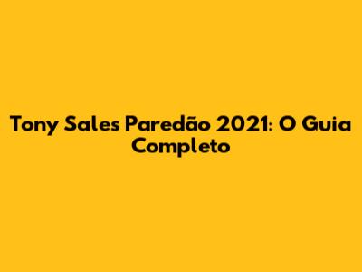 Tony Sales Paredão 2021: O Guia Completo