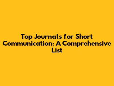 Top Journals For Short Communication: A Comprehensive List
