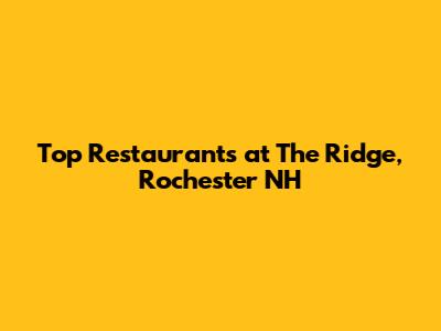 Hey guys! Are you looking for the best restaurants at The Ridge in Rochester, New Hampshire? Well, you've come to the right place! The Ridge is a popular area in Rochester, NH, known for its shopping, entertainment, and, of course, its fantastic dining options. Whether you're in the mood for a casual bite, a family-friendly meal, or a special night out, The Ridge has something to satisfy every craving. So, let's dive into some of the top restaurants you absolutely must try when you're in the area. I'm talking about spots that locals rave about, and visitors can't wait to return to. Get ready to discover your new favorite place!