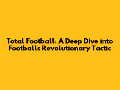 Total Football: A Deep Dive Into Football's Revolutionary Tactic