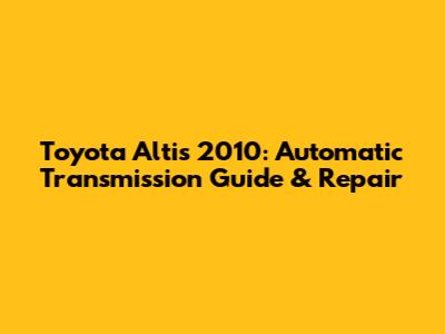 Toyota Altis 2010: Automatic Transmission Guide & Repair